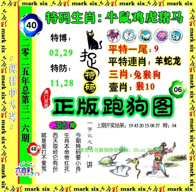 316期【⑦肖中特】:鼠虎蛇狗龙猴马
